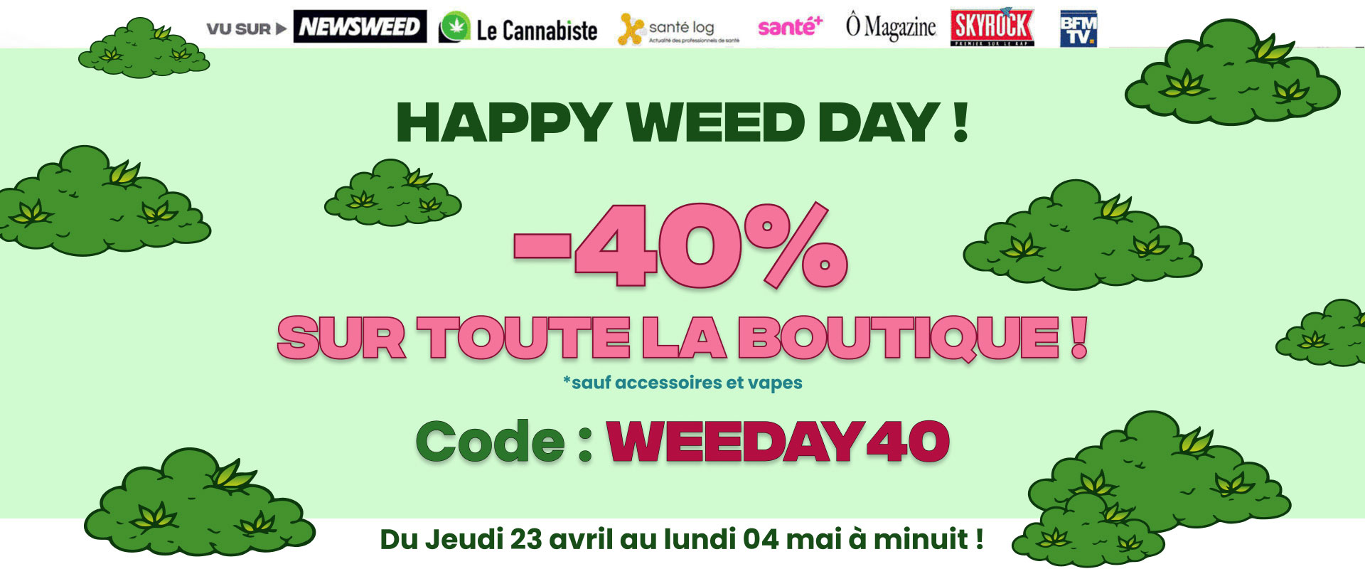 Découvrez notre large gamme pour votre consommation alimentaire de CBD: Fleurs CBD, huiles, infusions, résines, et plus encore. Livraison gratuite sur tout le CBD Shop dès 50 € d’achat (France, Monaco, Andorre) et des cadeaux dans chaque commande.