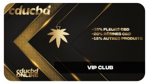 Devenez VIP grâce à cette carte digitale. Pour bénéficier de fortes remises sur la plupart des fleurs (-35%), sur les hash, infusions, huiles, e-liquides et pratiquement toute la boutique. Utilisable pour tous vos achats de CBD en ligne. Elle permet aussi -15% dans nos boutiques de Paris, Nice et du Val d’Ois …