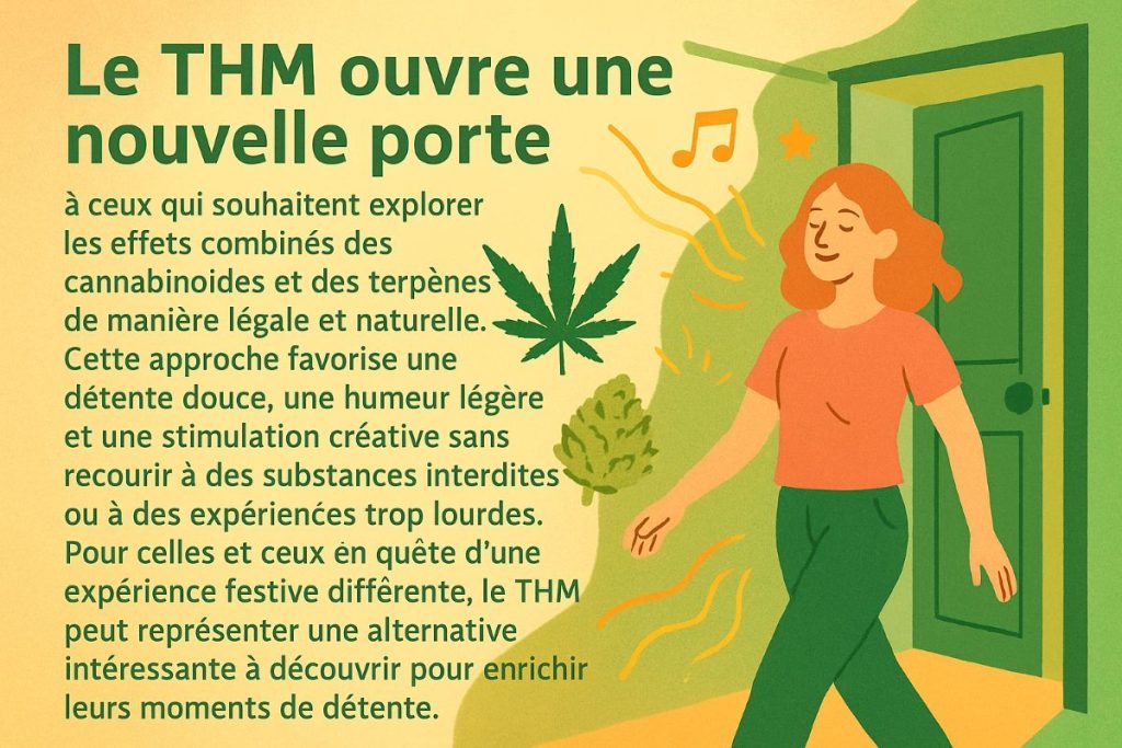 Le THM ouvre une nouvelle porte à ceux qui souhaitent explorer les effets combinés des cannabinoïdes et des terpènes de manière légale et naturelle. Cette approche favorise une détente douce, une humeur légère et une stimulation créative sans recourir à des substances interdites ou à des expériences trop lourdes. Pour celles et ceux en quête d’une expérience festive différente, le THM peut représenter une alternative intéressante à découvrir pour enrichir leurs moments de détente. En vente prochainement sur CDUCBD, d’autres variantes très proches du THM sont déjà disponibles sur notre boutique comme le CBDX.