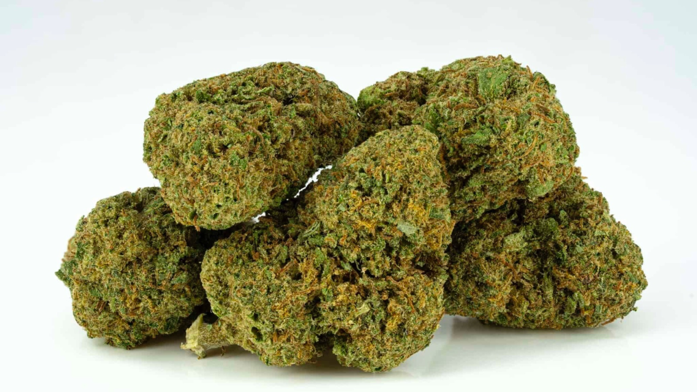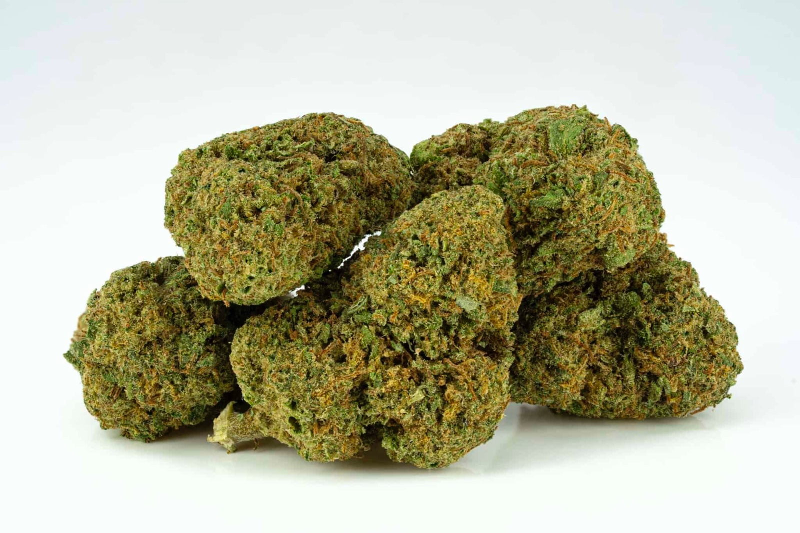 Les buds de la Sour Lifter sont de taille moyenne, bien formés, légèrement aérés, avec une belle présence résineuse. La couleur vert clair est ponctuée de pistils orangés, signe d’une génétique mature et d’un travail de culture maîtrisé.