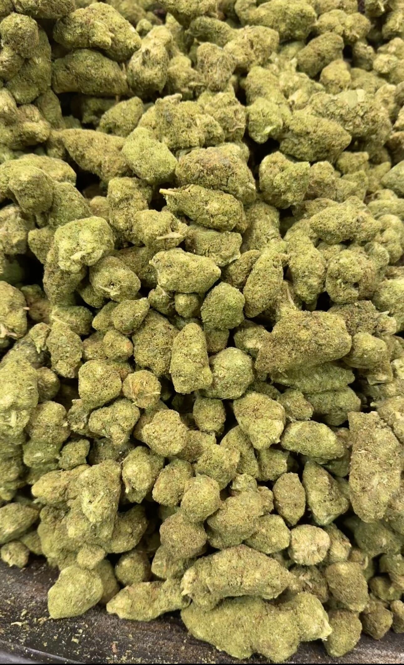 Les buds Frozen USA CBD présentent des têtes compactes, vert clair, recouvertes de pistils orangés et d’une belle couche de trichomes. Leur aspect dense et résineux atteste d’une culture soignée et d’un curing parfaitement maîtrisé.