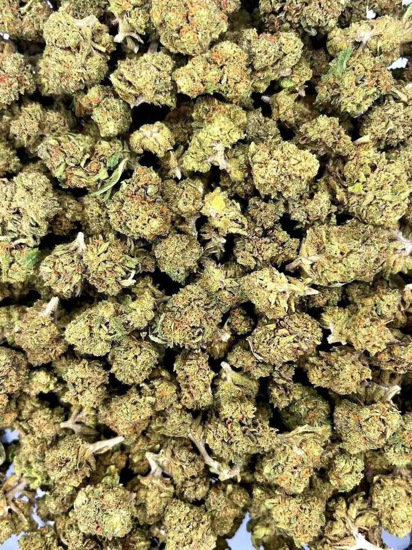 Les Small Buds THX + affichent une structure compacte, une couleur vert clair et des pistils orangés bien visibles. Leur taille réduite est compensée par une présence notable de trichomes, gage d’une fleur riche et bien cultivée.